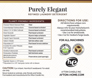 Give your laundry the care it deserves with our Purely Elegant plant-based laundry detergent - where powerful cleansing meets refined, luxurious scent. Crafted with nature's purest ingredients, our formula removes dirt and odors while leaving your fabrics irresistibly fresh and elegantly fragranced.
