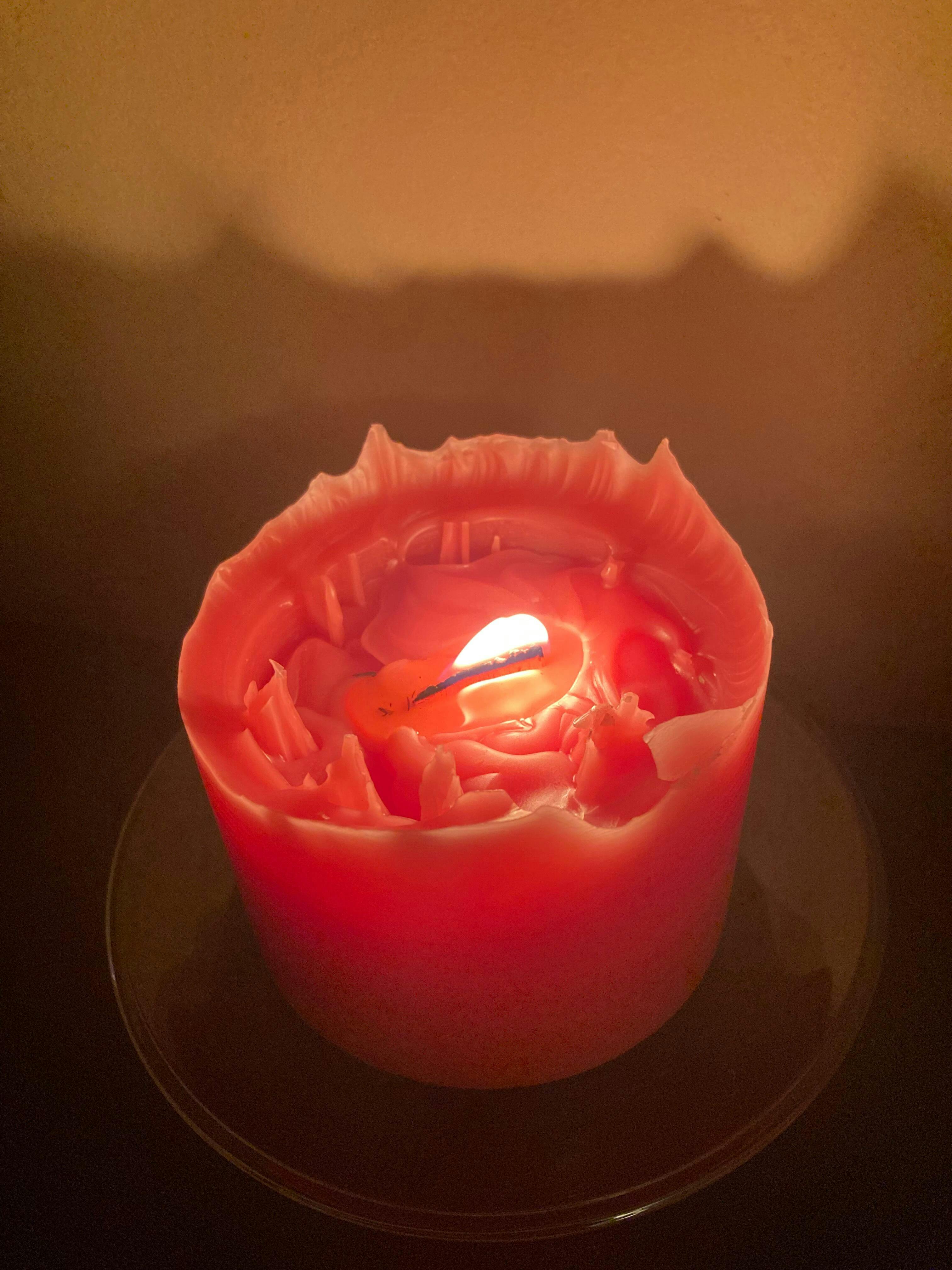 This candle is so neat. It smells so good. I haven't lit it yet. The smell is amazing. My whole dining room smells so good.