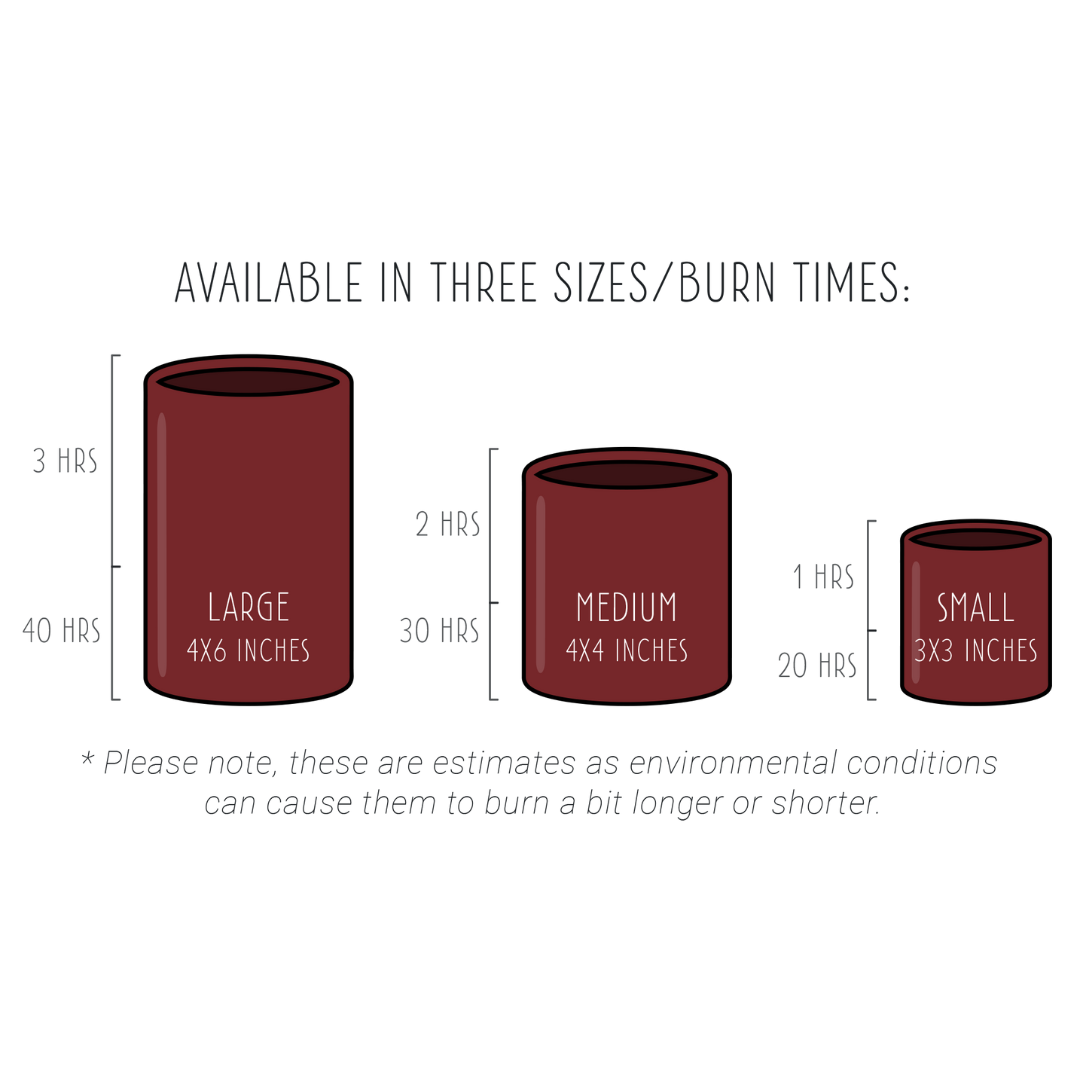 Why not soy? To put it simply, we can’t. Our wax is extremely hard and melts at a high temperature. It is not a normal candle wax. That is how we get the candles to burn the way they do. If we used soy, we would have a blob of wax on a plate and probably wouldn’t sell very many.
